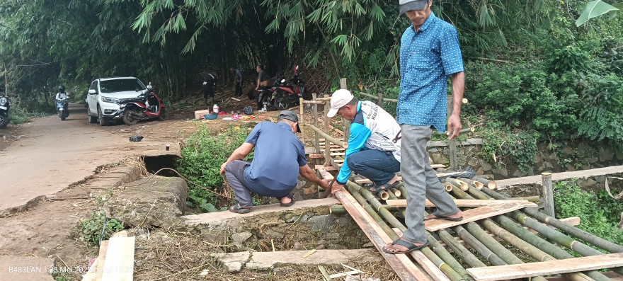 TAMANSARI - Pemerintah Desa Tamansari kembali lakukan pekerjaan perbaikan jembatan Cirangkong - Balekambang,Minggu (25/5). Pekerjaan tersebut di hadiri langsung oleh Kepala Desa Tamansari M Jahi Hidayat beserta jajarannya.